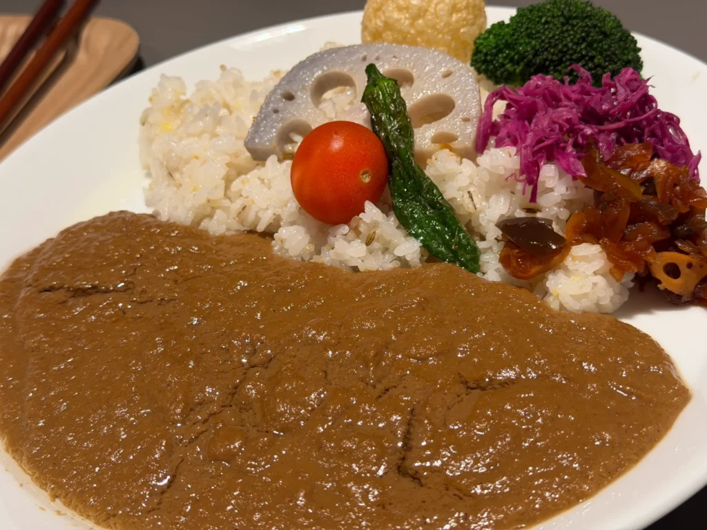 僕が食べたのは、生春巻きと、白トリュフ香るオーツミルクと茸のカレー。